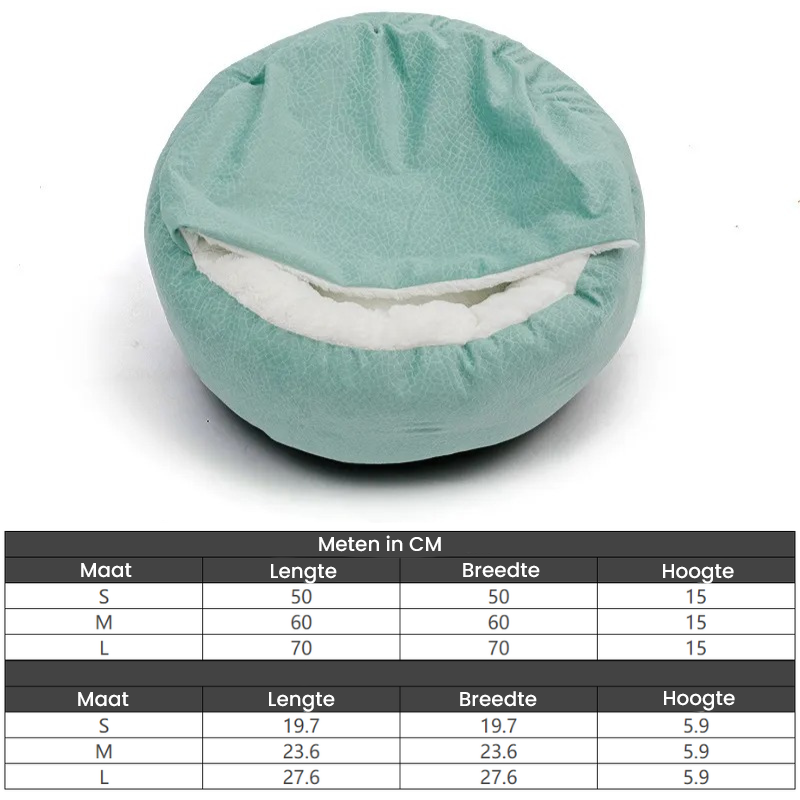 Dit knusse bed biedt een warm, ondersteunend mat kussen dat ideaal is voor gebruik binnenshuis. Het bijgevoegde huisdierendeken is ontworpen om beter te slapen en is perfect voor huisdieren die zich graag verstoppen of graven, en geeft ze een gevoel van veiligheid en warmte.