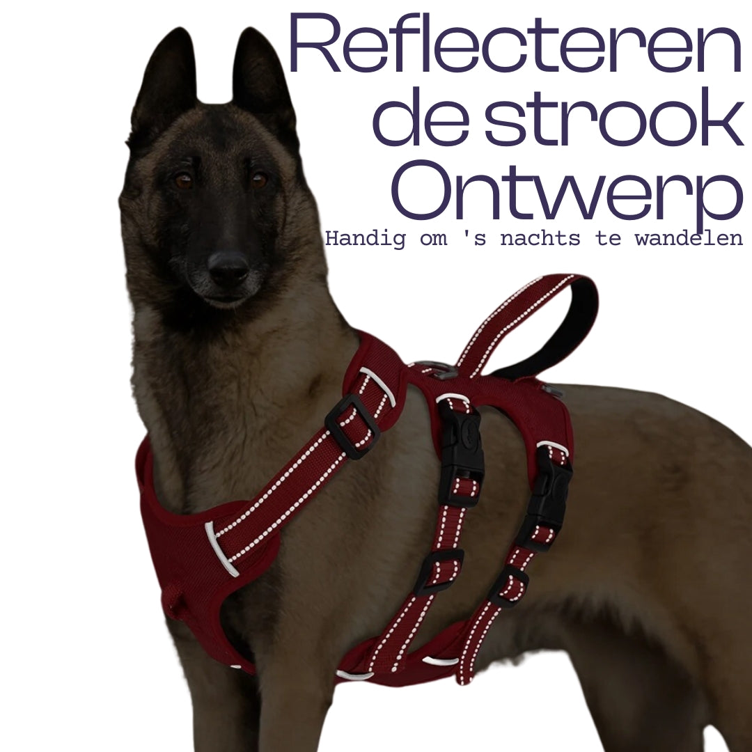 Het ultieme harnas voor sterke honden zoals pitbulls met 3 bevestigingspunten en reflecterende details