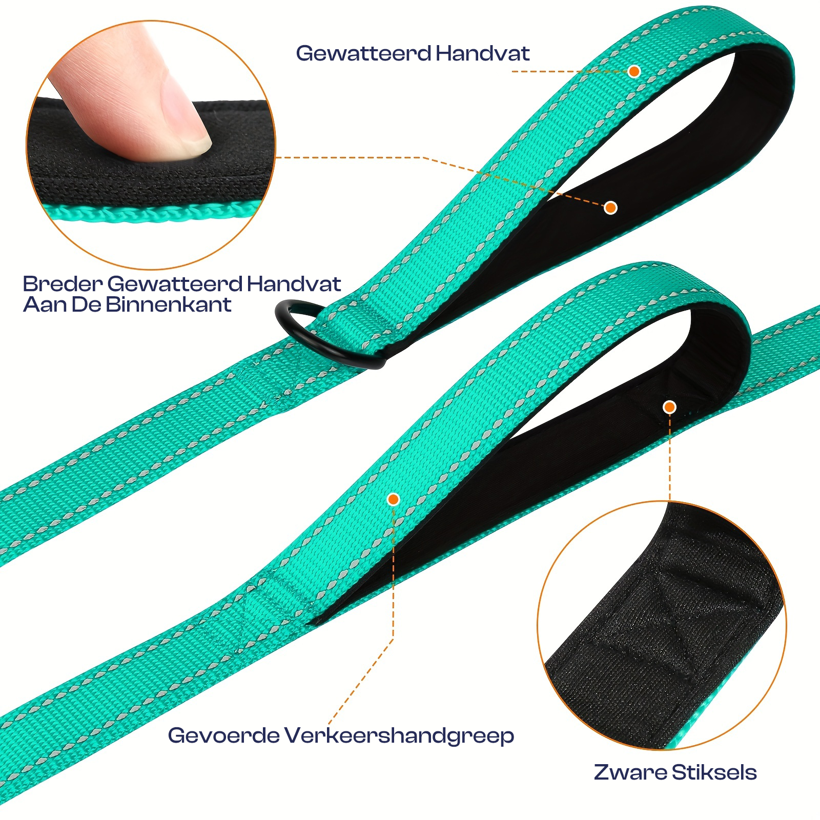 Gemaakt van duurzaam polyester, is deze heavy-duty riem perfect voor nachtelijke wandelingen en trainingen. Het dubbele handvat zorgt voor een stevige grip, zodat je in elke situatie controle hebt over je hond.